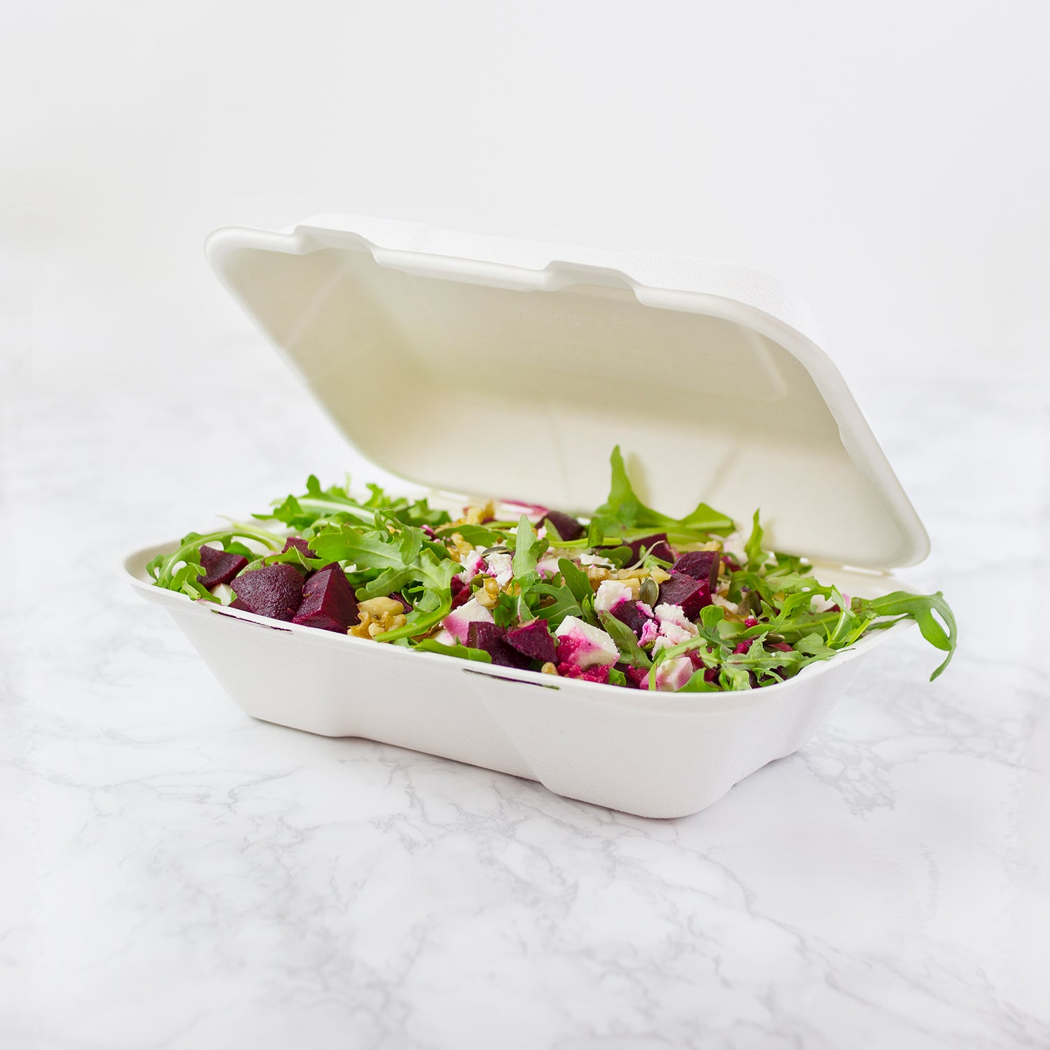 Vegware's Nourish™ moulded fibre products are made from reclaimed natural fibre such as sugarcane, bamboo or wood pulp. Once the material has been pressed for juice, a dry fibrous material remains. This waste product goes through a high-heat, high-pressure process that presses and shapes the material, turning it into our moulded fibre takeaway boxes, plates, cups and bowls.