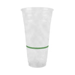 This 24oz clear cold cup is ideal for serving cold drinks, as well as desserts. Its transparent design allows for great visibility. The green band allows the cup to stand out. Made from rPET, a recycled form of PET, this cup is fully recyclable and is compatible with 98 Series lids (sold separately).