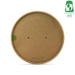 Eco-friendly flat water-based aqueous lined paper lid to suit all 150 Series paper bowls (sold separately). Suitable for serving hot or cold foods with vent holes to reduce steam build-up! This product features a tight and sturdy design to prevent any potential leakage. Natural kraft brown with eco messaging in green & Vegware Green Leaf Banding.