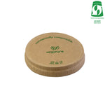 Kraft paper sauce pot lid, fits 75ml paper sauce pots. Perfect for delivery and takeaway service. Pop a lid on the sauce pot and secure your sauce. Made from sustainably-sourced kraft paper with a water-based lining. Sleek kraft colour with Vegware's iconic green elements. Award-winning quality by Vegware, made from plants.
